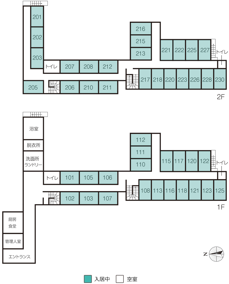 - 「空室」でも現況は卒業予定者(退館予定者)が入居している部屋がございます。